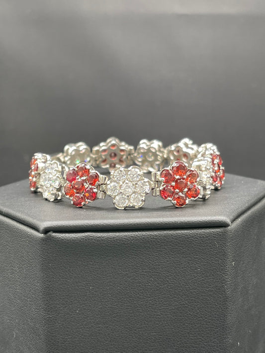 Natural Garnet & Cubic Zirconia Sterling Silver Floral Bracelet