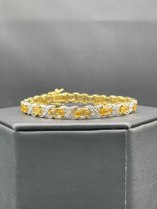 6.45 Carat Natural Citrine & Diamond Sterling Silver Vermeil Bracelet
