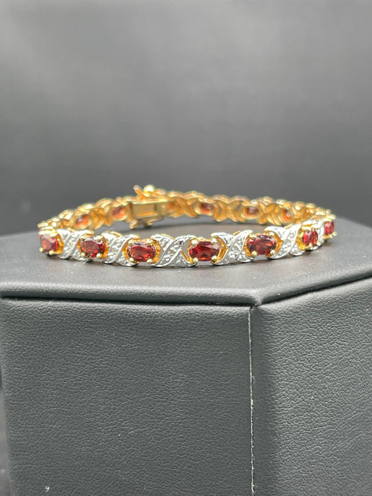9.75 Carat Natural Garnet & Diamond Sterling Silver Vermeil Bracelet