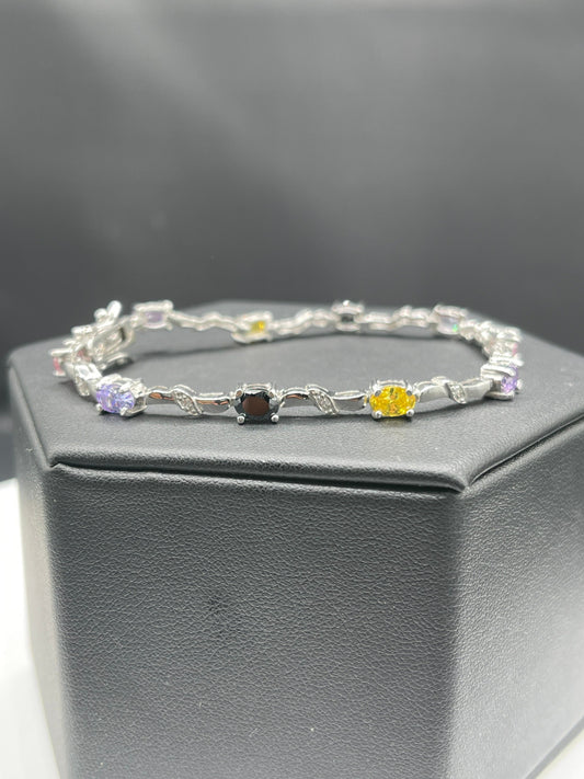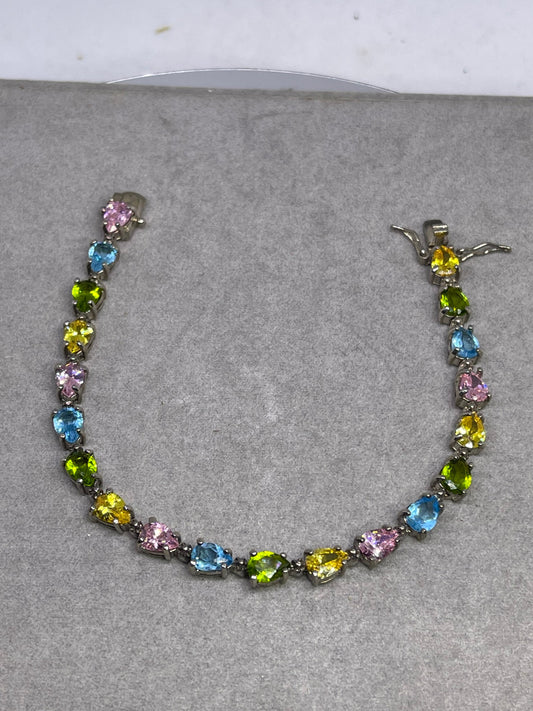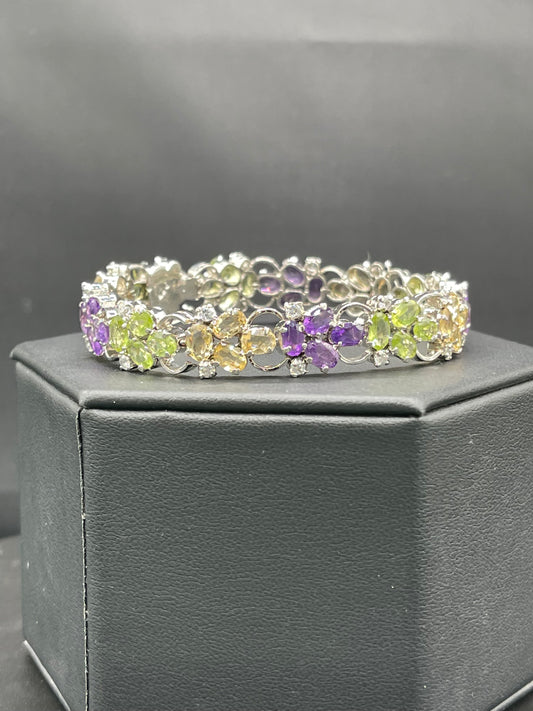 Natural Peridot Amethyst Citrine & Cubic Zirconia Heavy Sterling Silver Bracelet