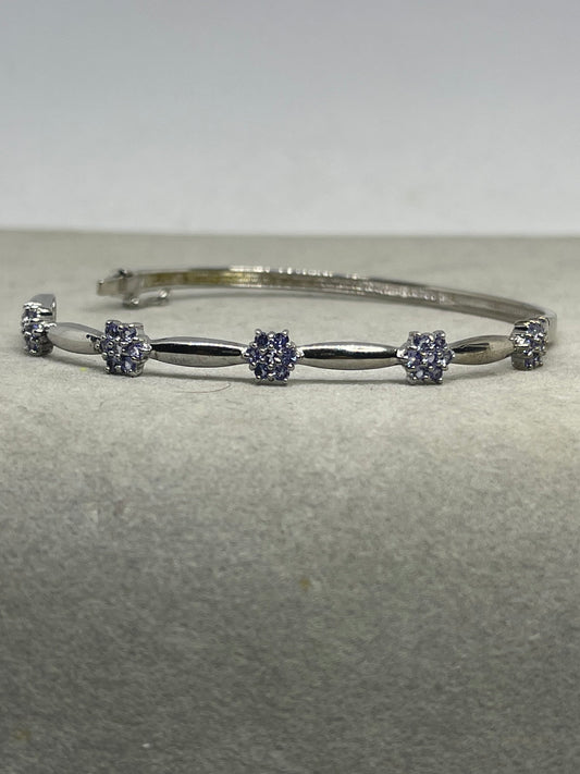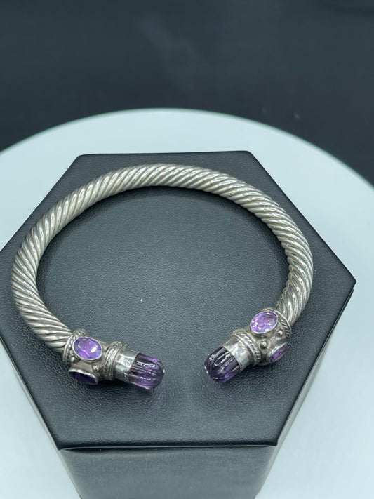 Amethyst Sterling Silver Cable Bangle Adjustable Bracelet