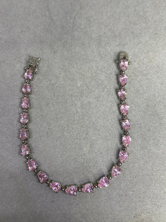 Pink Cubic Zirconia Sterling Silver Bracelet