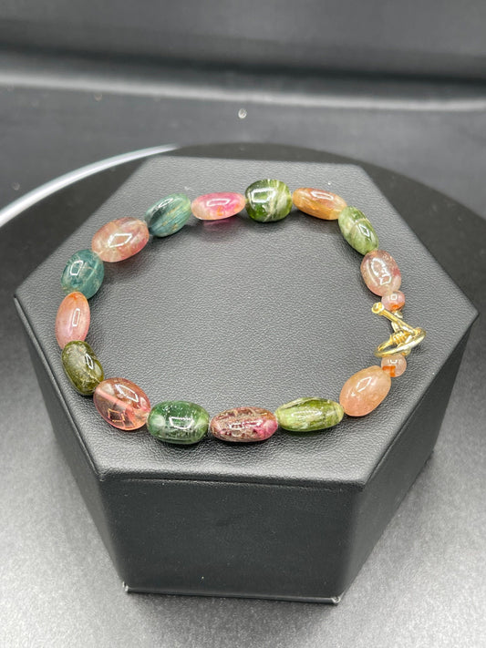Natural Multicolor Tourmaline Beaded Vermeil Bracelet