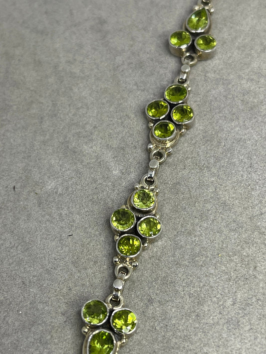 Natural Perdiot Adjustable Sterling Silver Bracelet