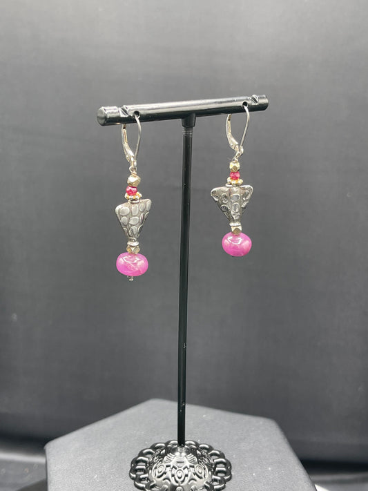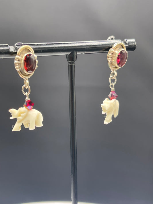 Natural Garnet & Ivory Elephant Sterling Silver Dangle Earrings | Handmade One-of-a-Kind Jewelry