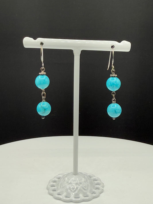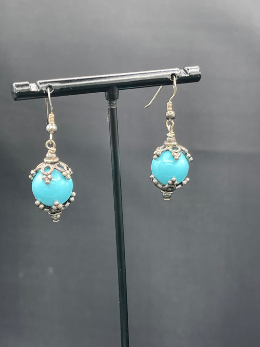 Handmade Natural Turquoise Bead Sterling Silver Dangle Earrings
