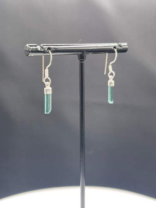Handmade Green Tourmaline Crystal Sterling Silver Dangle Earrings, 1.16” Length, 925 Stamped