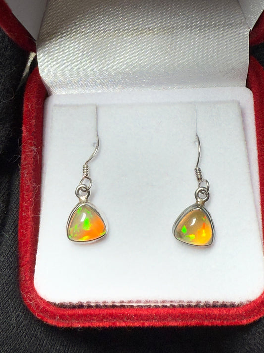 Natural Ethiopian Opal Trillion Cut Sterling Silver Dangle Earrings