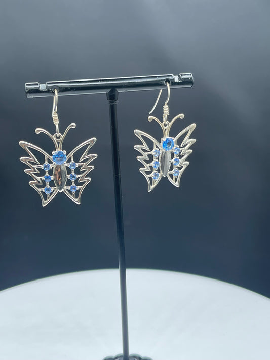 Handmade Natural Blue Topaz Butterfly Sterling Silver Dangle Earrings
