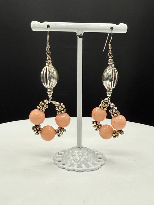 Natural Angel Skin Pink Coral Sterling Silver Dangle Earrings