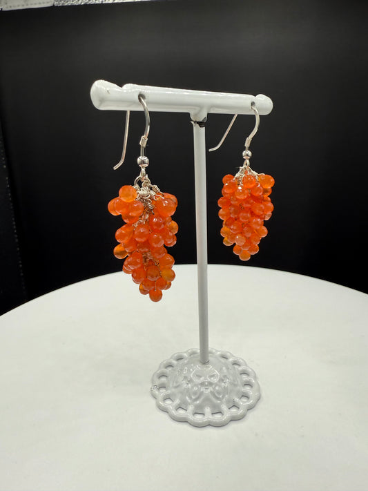 Natural Carnelian Briolette Sterling Silver Grape Cluster Dangle Earrings
