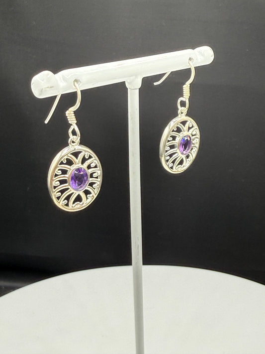 Handmade Natural Amethyst Sterling Silver Dangle Earrings – Designer Earrings