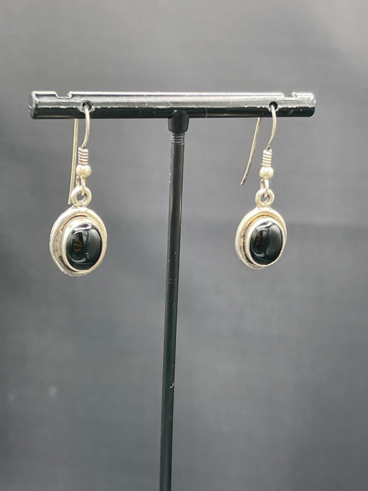 Vintage Natural Black Onyx Sterling Silver Dangle Earrings