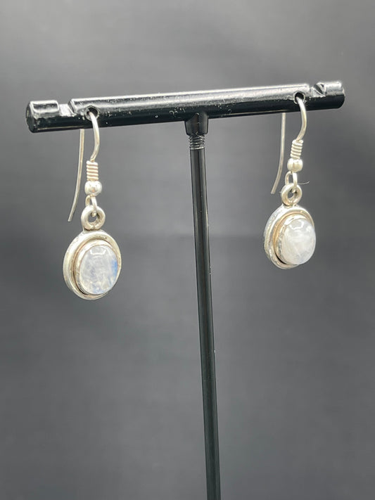 Natural Rainbow Moonstone Sterling Silver Dangle Earrings