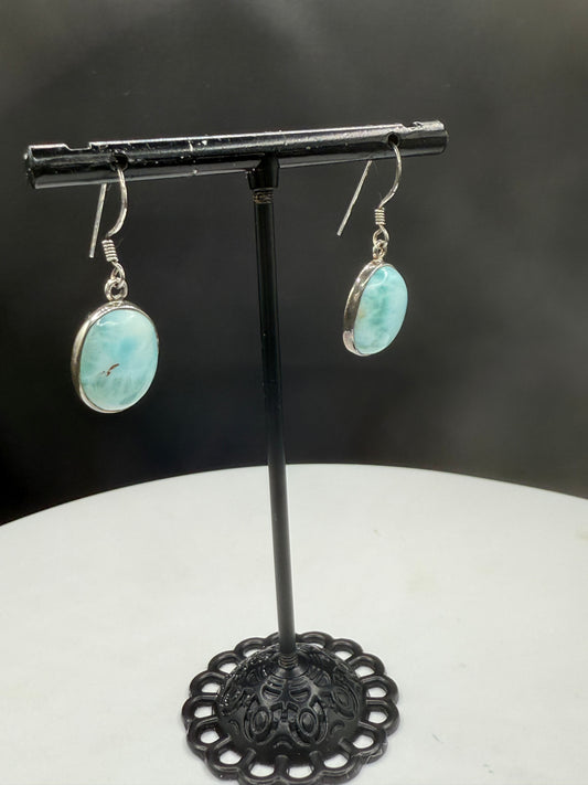 Natural Larimar Sterling Silver Dangle Earrings | 1.24 Inches