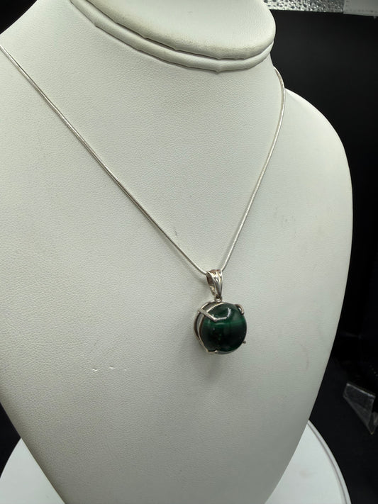 Natural Malachite Sterling Silver Pendant & Necklace | 18 Inches Length