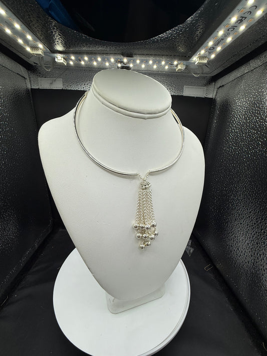 Solid 925 Sterling Silver Adjustable Bali Necklace | Ball & Chain Dangle Pendant | 14–16 Inch | 31.55g