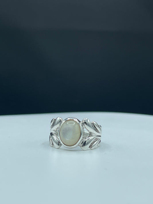 Natural Mother Of Pearl Sterling Silver Ring (Size 8)