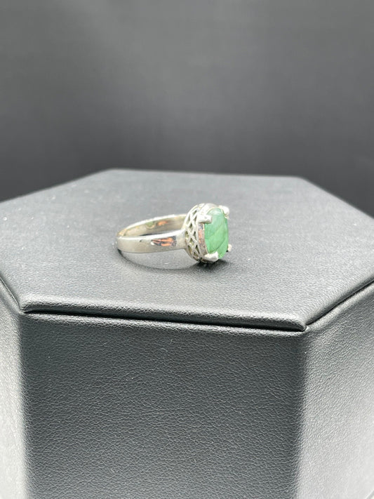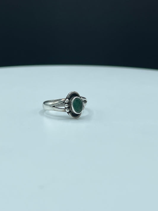 Petite Natural Emerald Sterling SIlver Ring (Size 5.5)