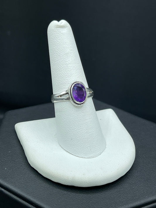 Natural Amethyst Sterling Silver Ring (Size 5.5)