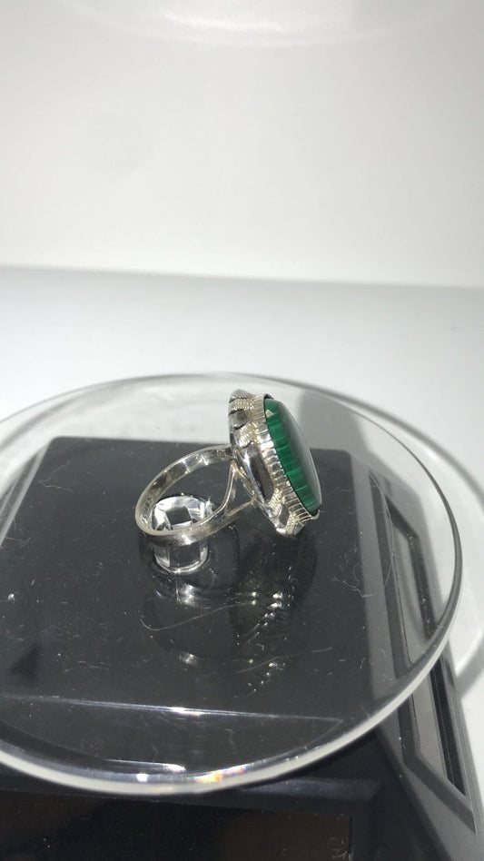 Natural Emerald Sterling Silver Cigar Ring (Size 8)