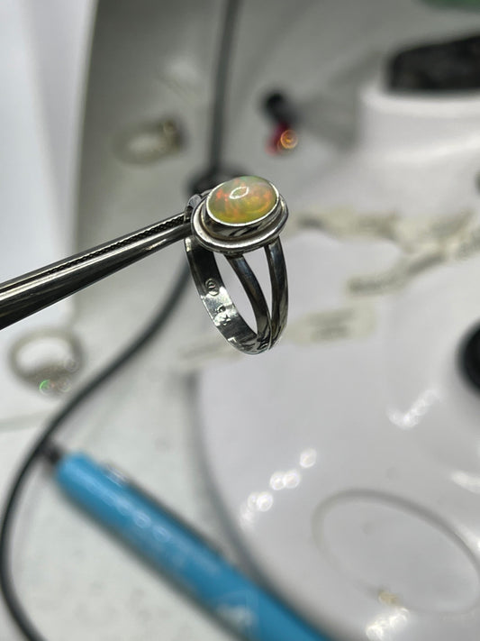 Natural Ethiopian Opal Sterling Silver Ring (Size 7.5)