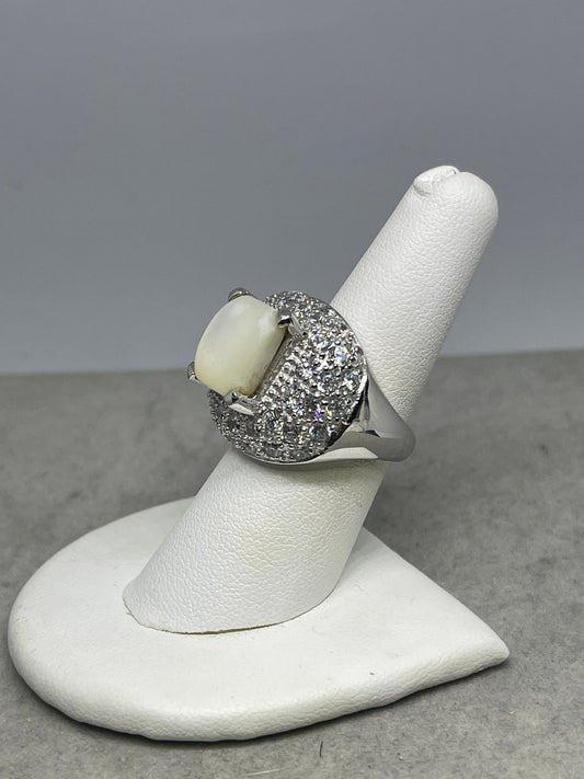 Mother Of Pearl & Cubic Zirconia Sterling Silver Ring (Size 7)