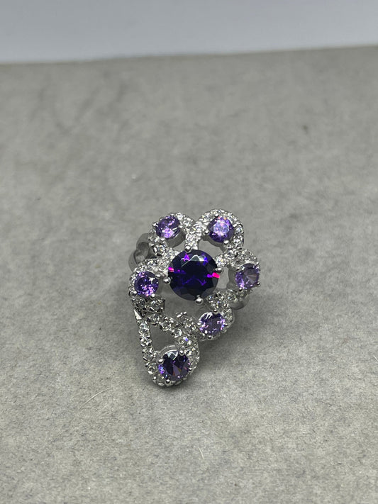 Purple & White Cubic Zirconia Sterling Silver Glam Ring (Size 7.25)
