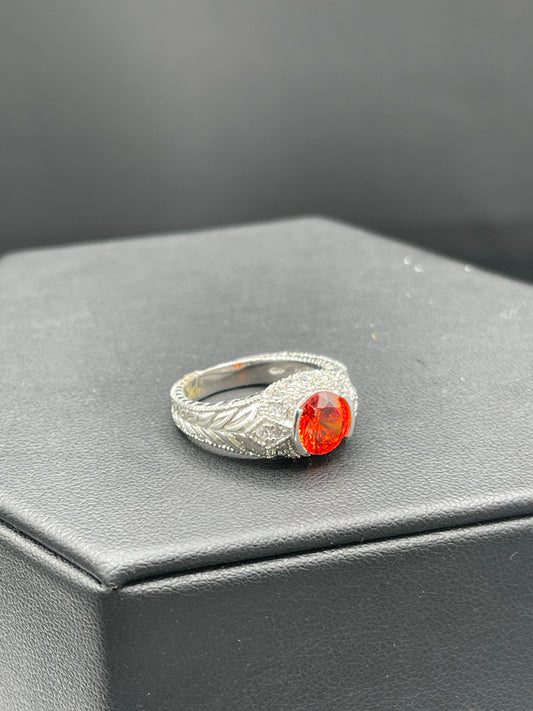 1.30 Carat Orange Cubic Zirconia Sterling Silver Ring (Size 6.25)