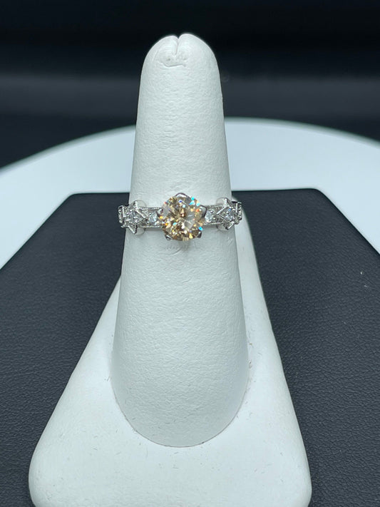 1.30 Carat Champagne Cubic Zirconia Sterling Silver Ring (Size 7.25)