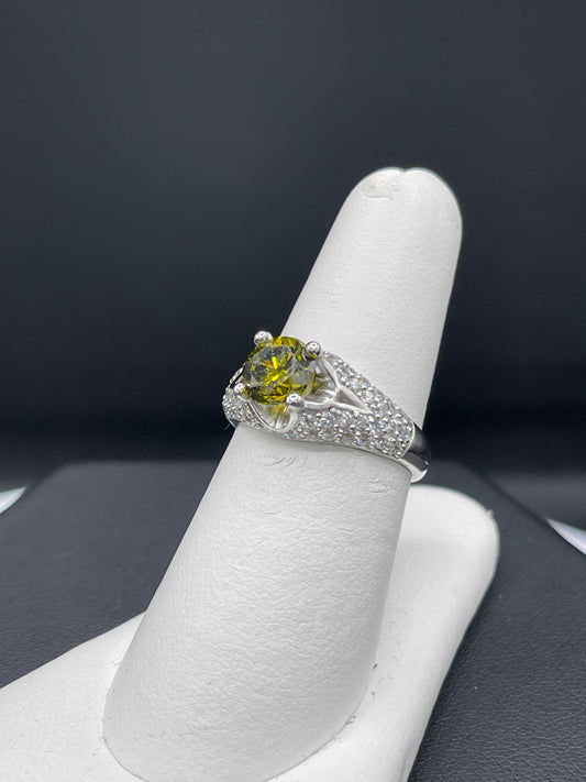 1.30 Carat Green Cubic Zirconia Sterling Silver Ring (Size 7.25)