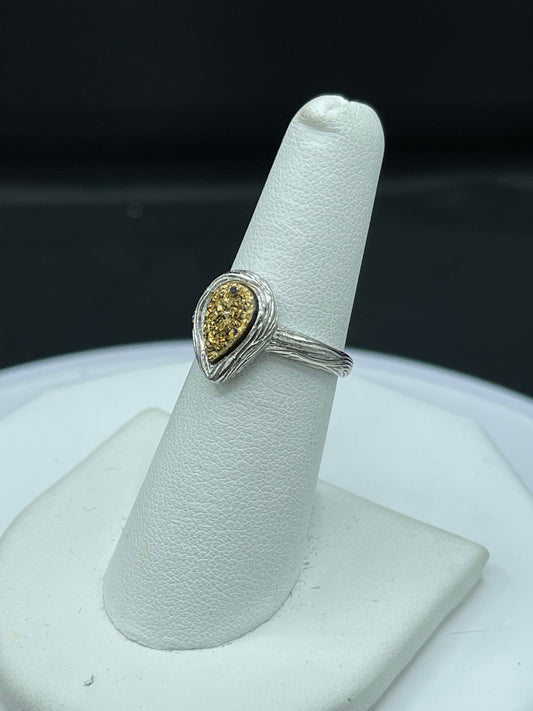 Gold Druzy Quartz Bezel Set Sterling Silver Ring (Size 6)