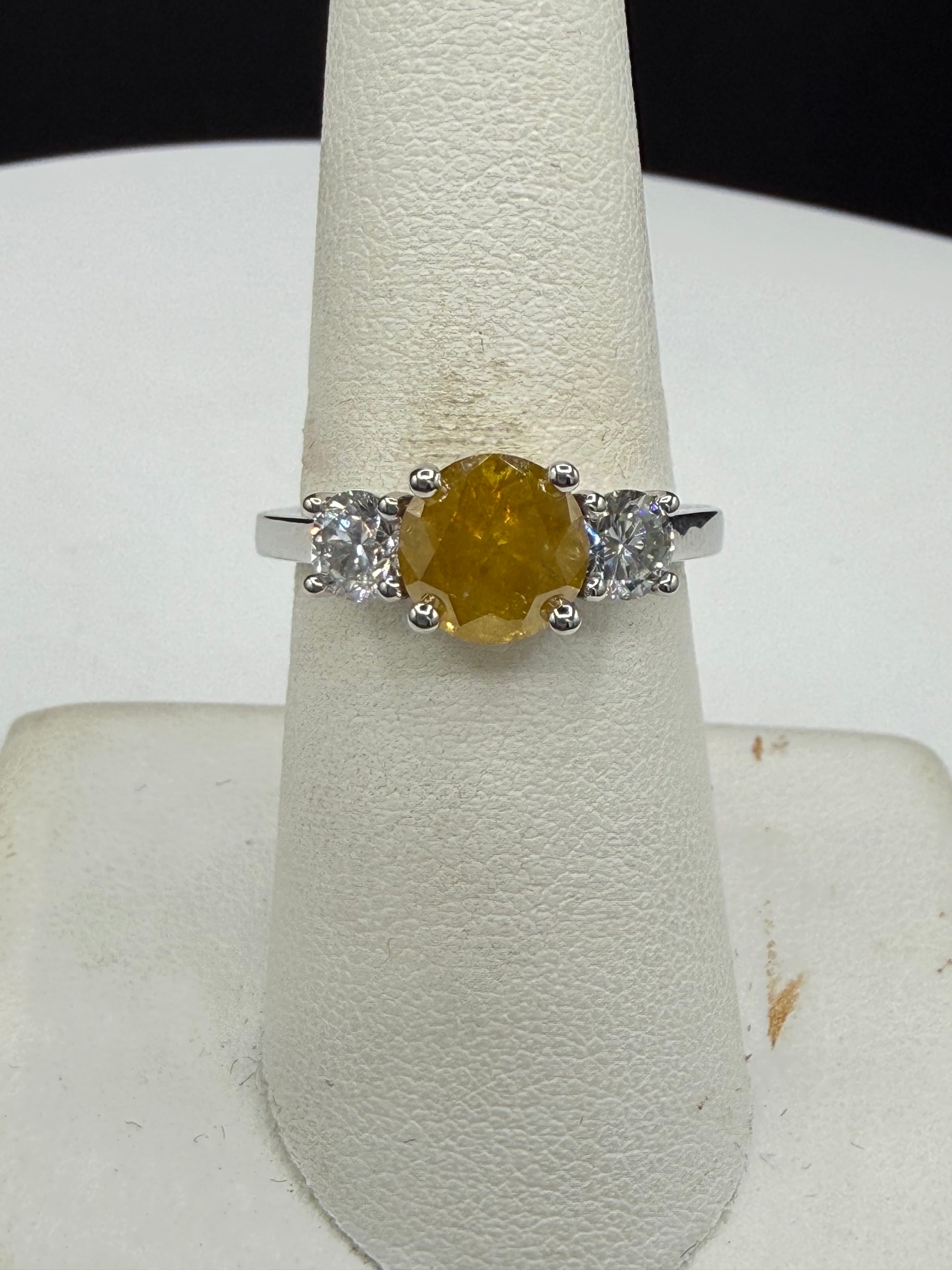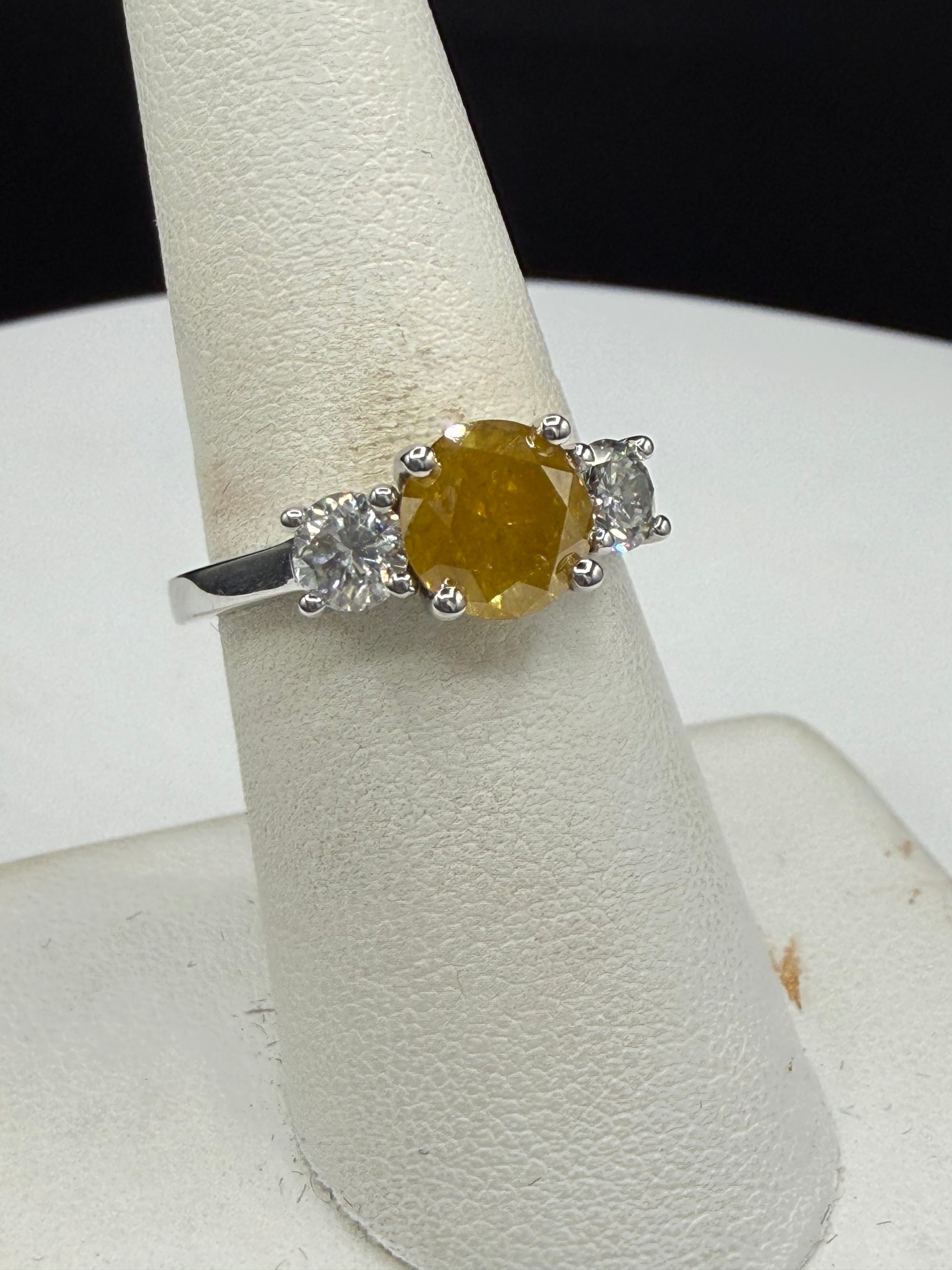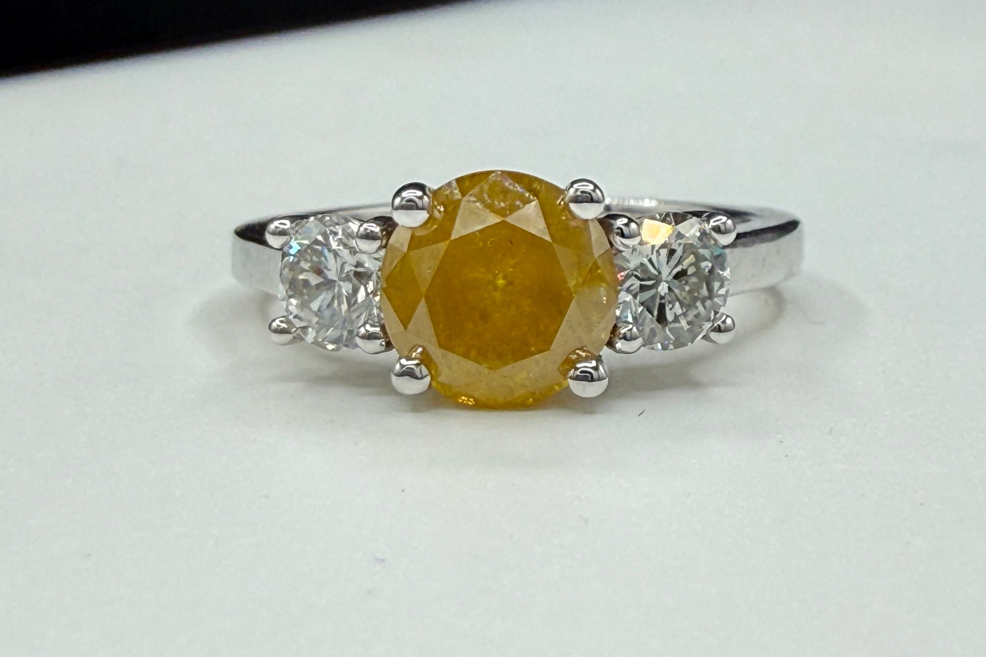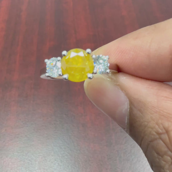 GIA Certified 1.75ct Fancy Intense Orange-Yellow Diamond Ring | 18K White Gold | 0.80 Ct White Diamond Accents | Size 7