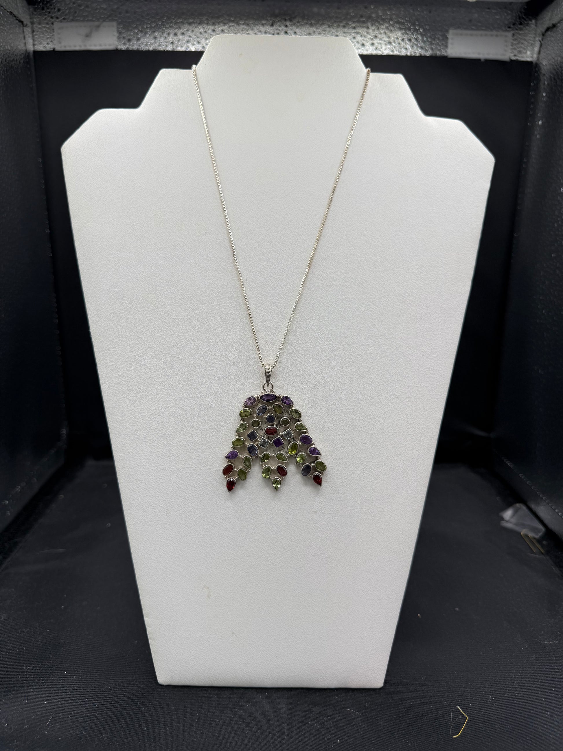 Handmade Sterling Silver Multi-Gemstone Pendant Necklace | Natural Amethyst, Peridot, Garnet, Iolite & Aquamarine