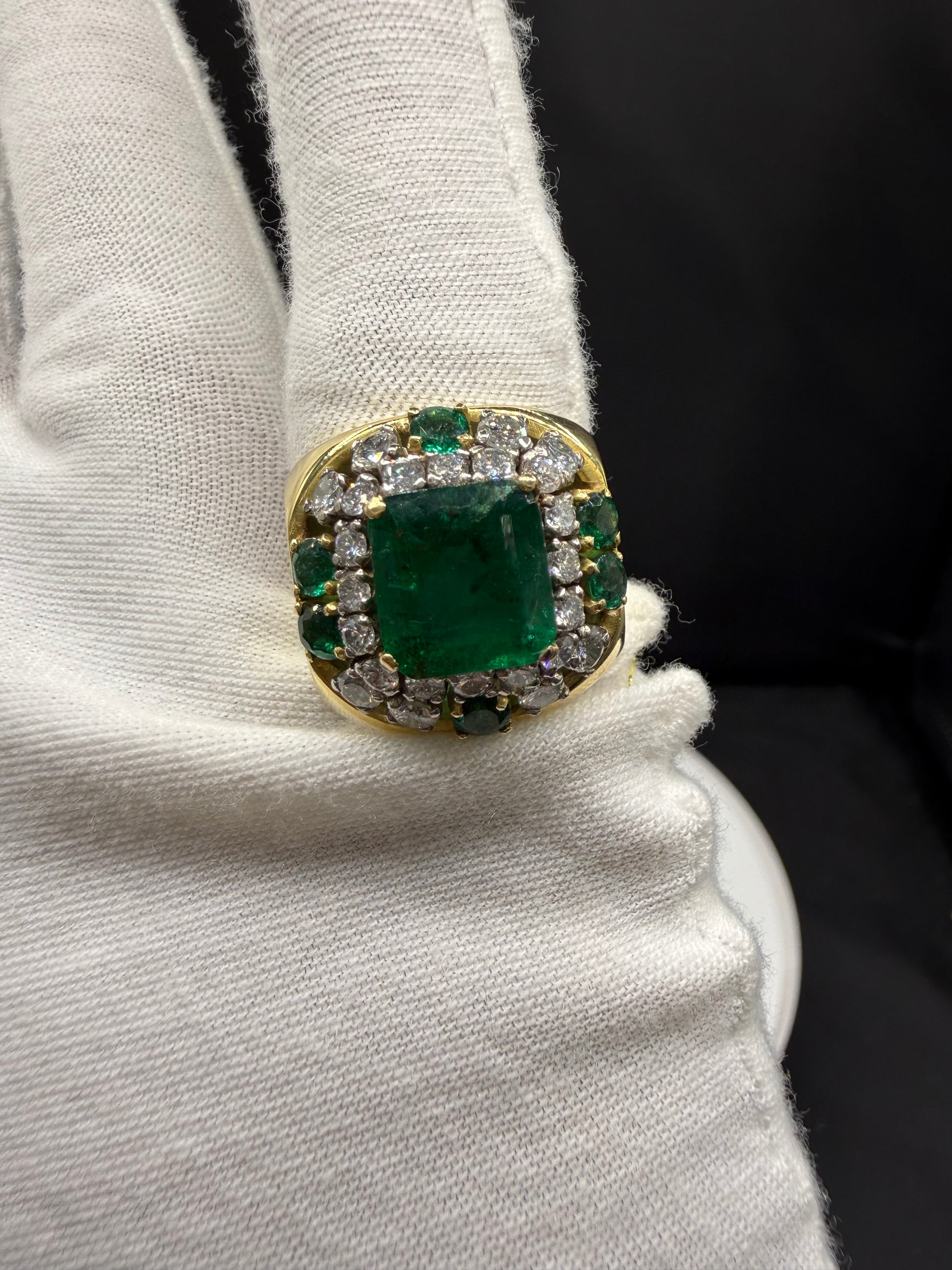 Magnificent 18K Yellow Gold Emerald & Diamond Ring (Size 7) | 5.60 Ct Emerald | 1.83 Ct Diamonds