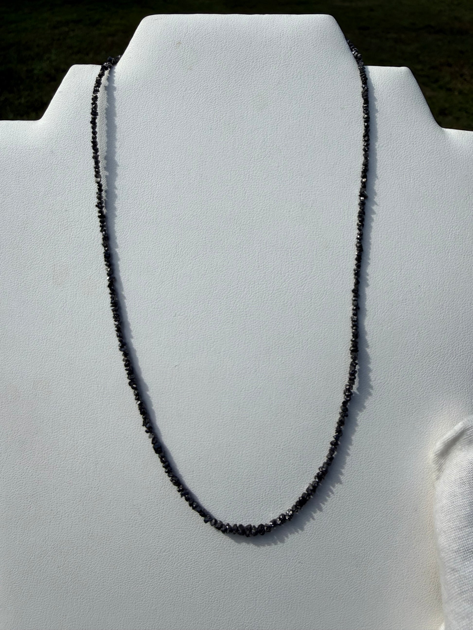 Natural Black Diamond Uncut Bead Necklace | 15 Carats | 17.5” | 18k Gold S-Clasp