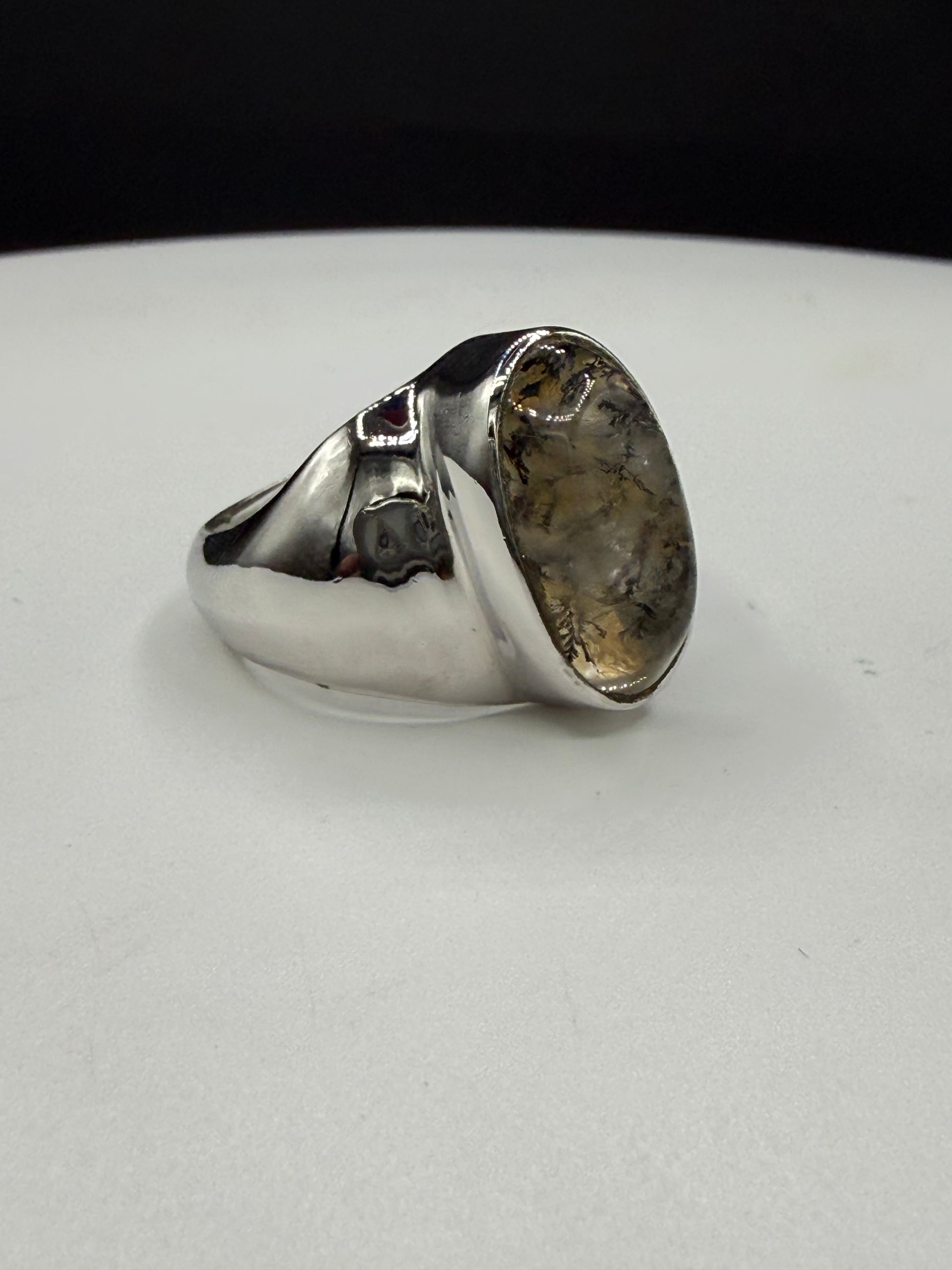 Natural Dendritic Quartz Sterling Silver Ring (Size 8.75)