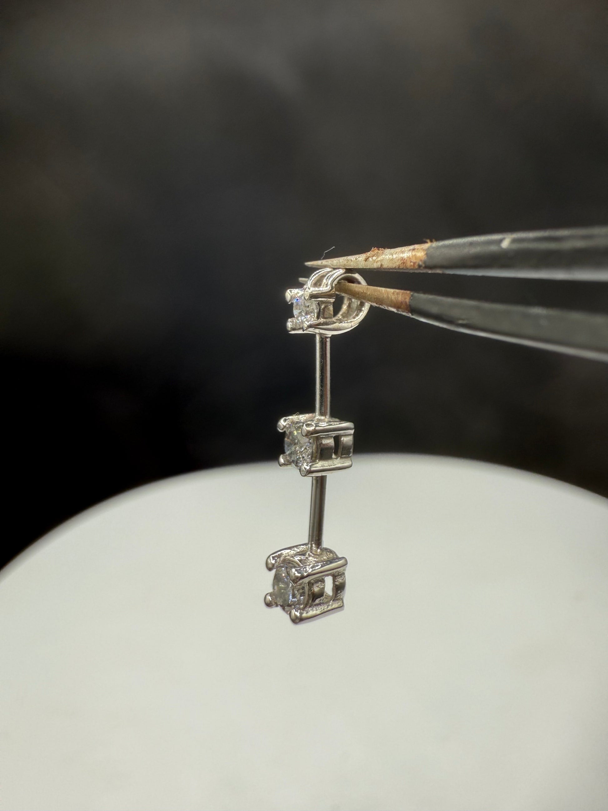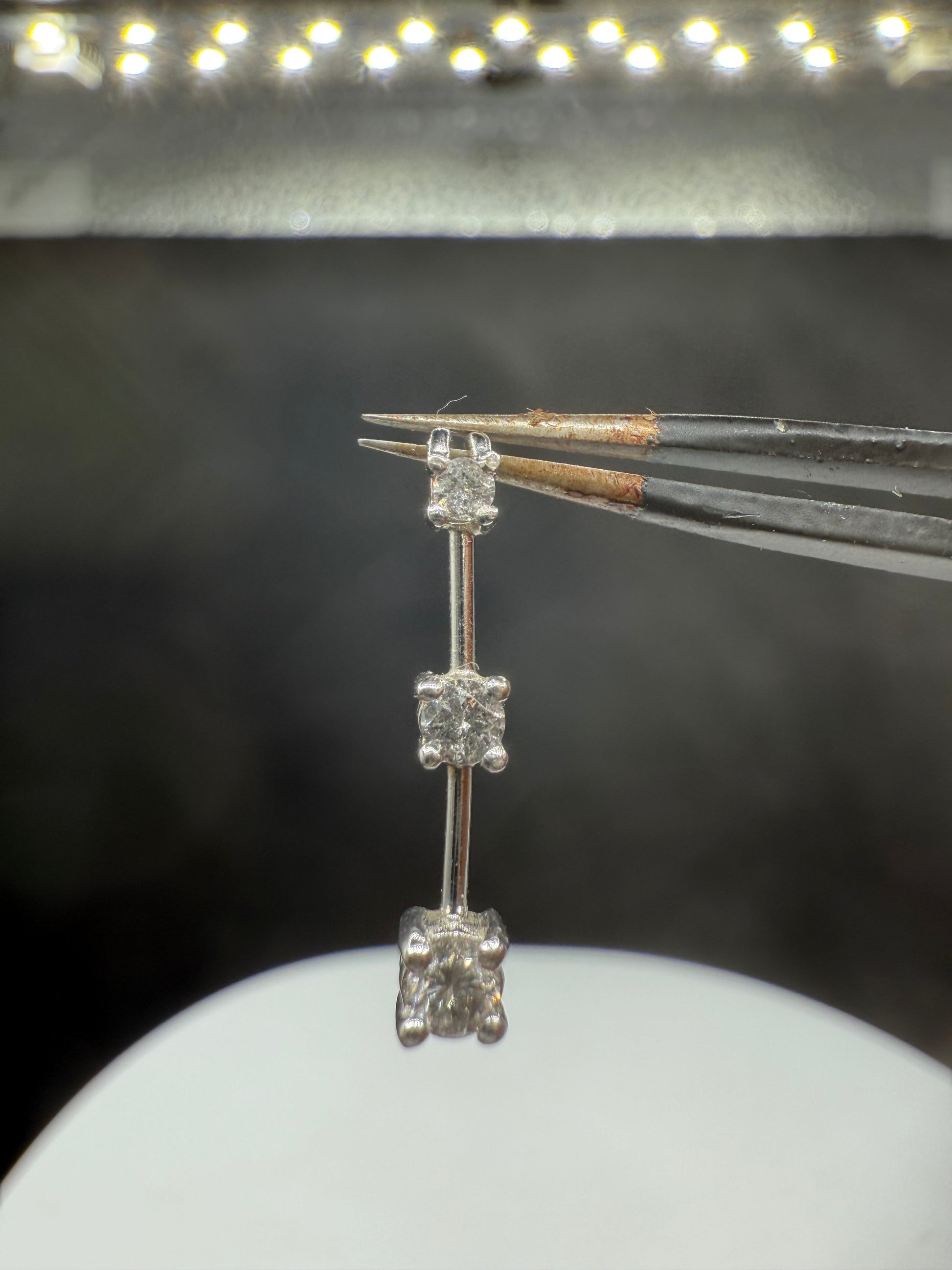 Natural Diamond Graduated Pendant in 14k White Gold – Three-Stone Drop, 20mm, 0.25ctw