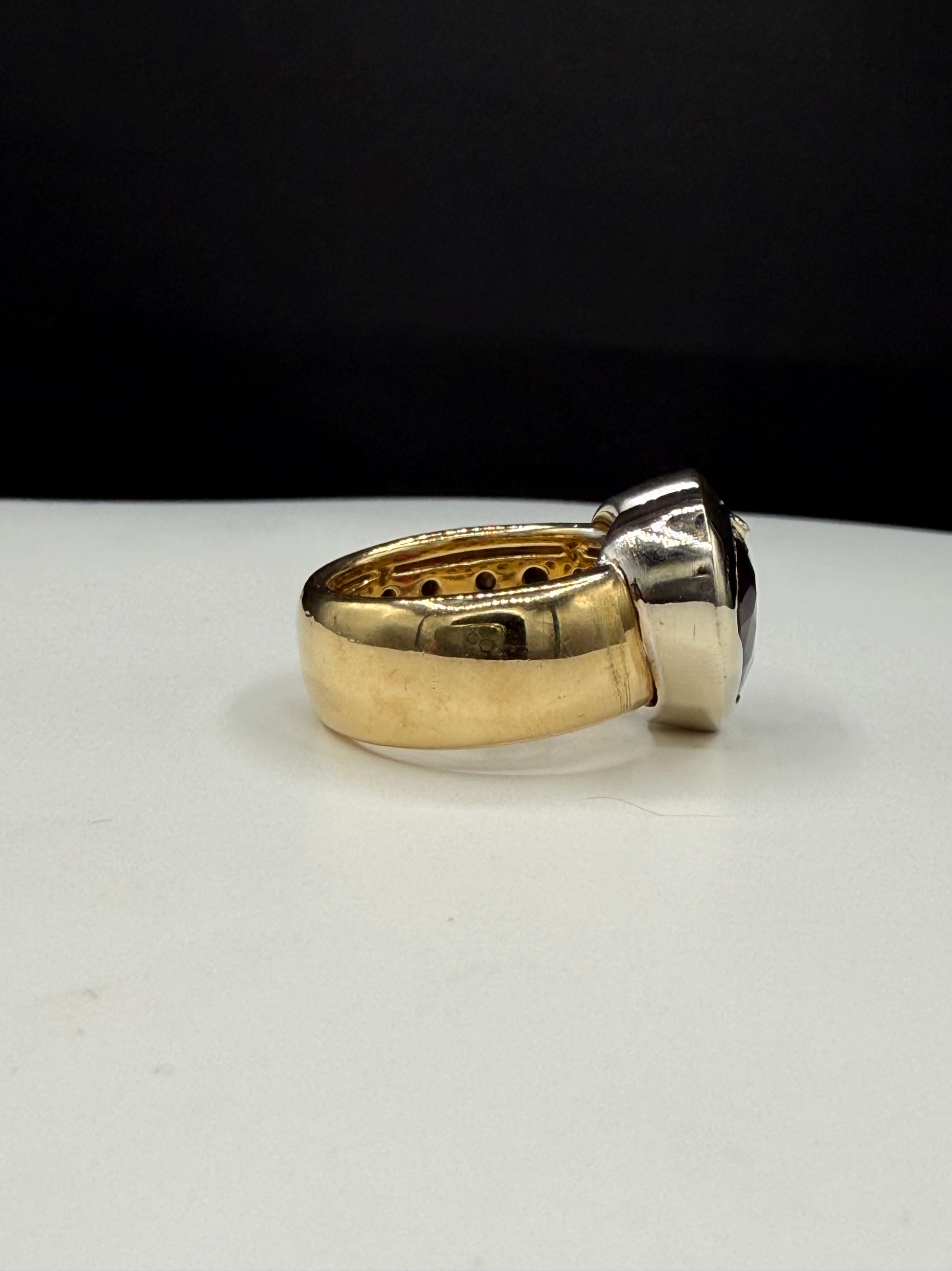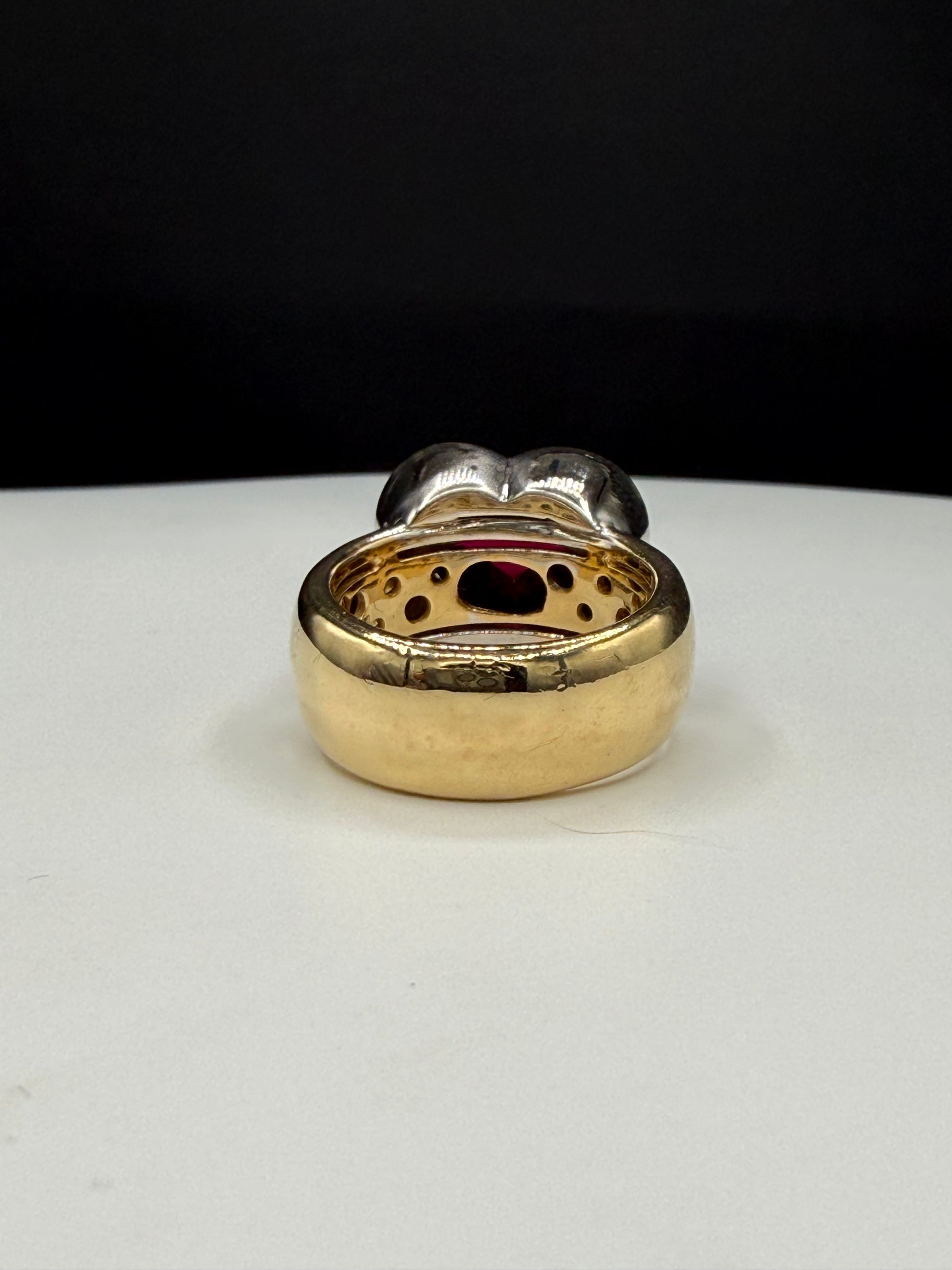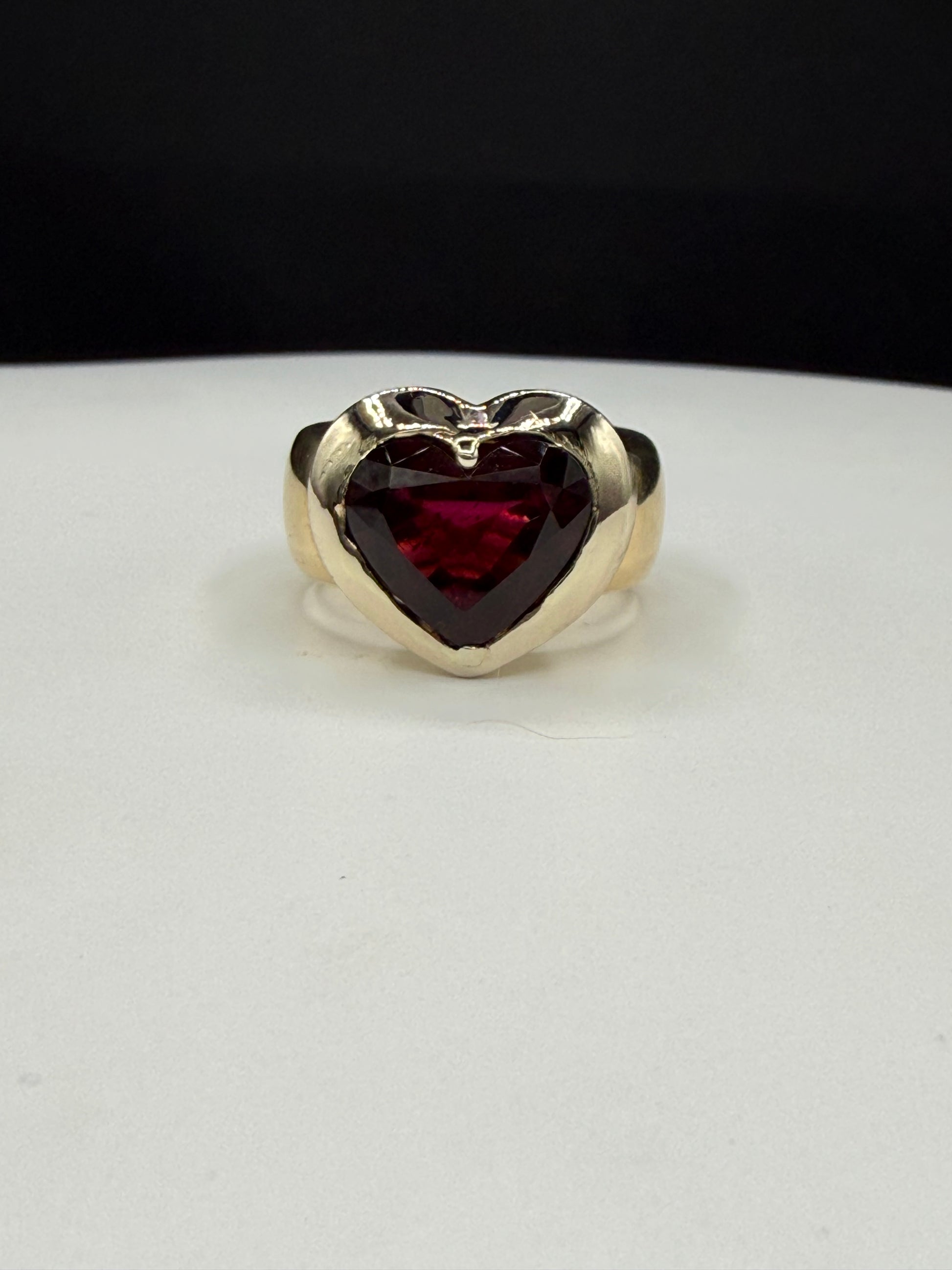 Natural Rubellite Tourmaline Heart 18k Yellow + White Gold Ring | 5.63 Carats | Size 7.25