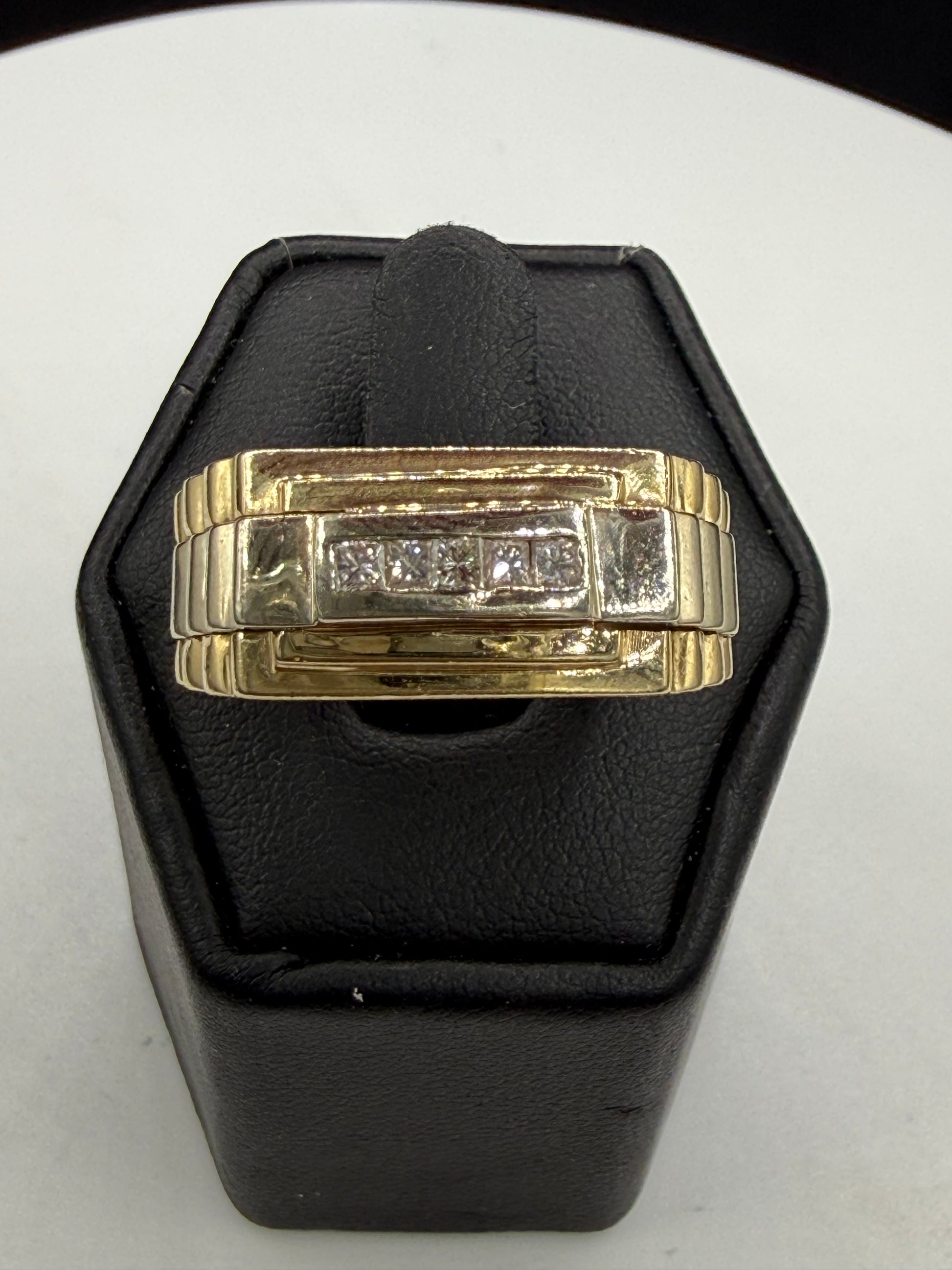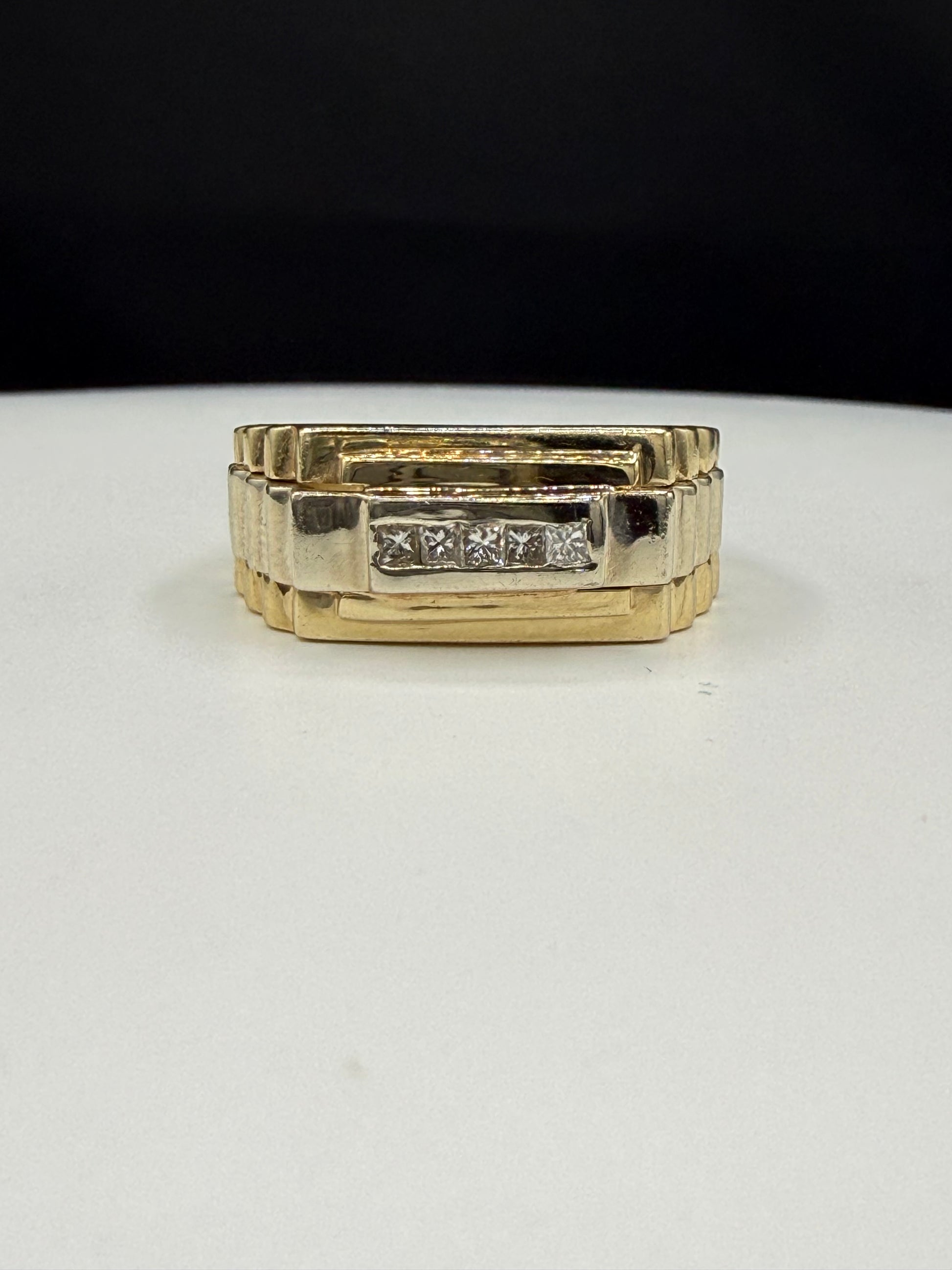 Vintage Men’s Diamond 14k Yellow Gold Statement Ring (Size 10)