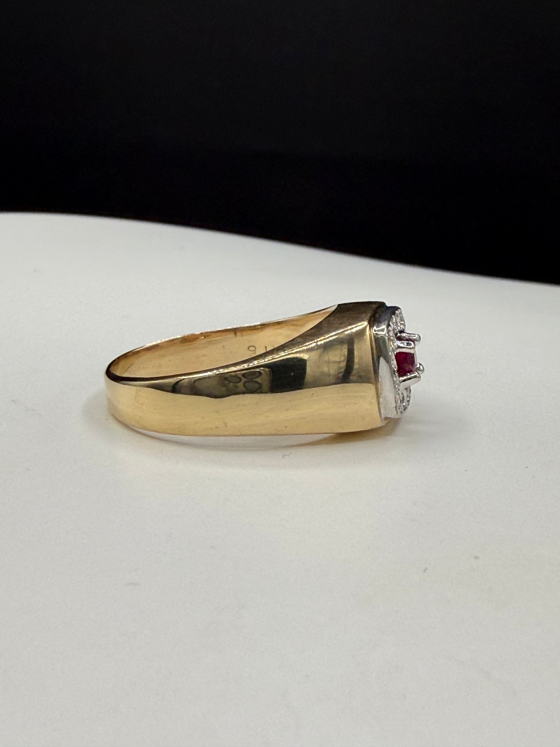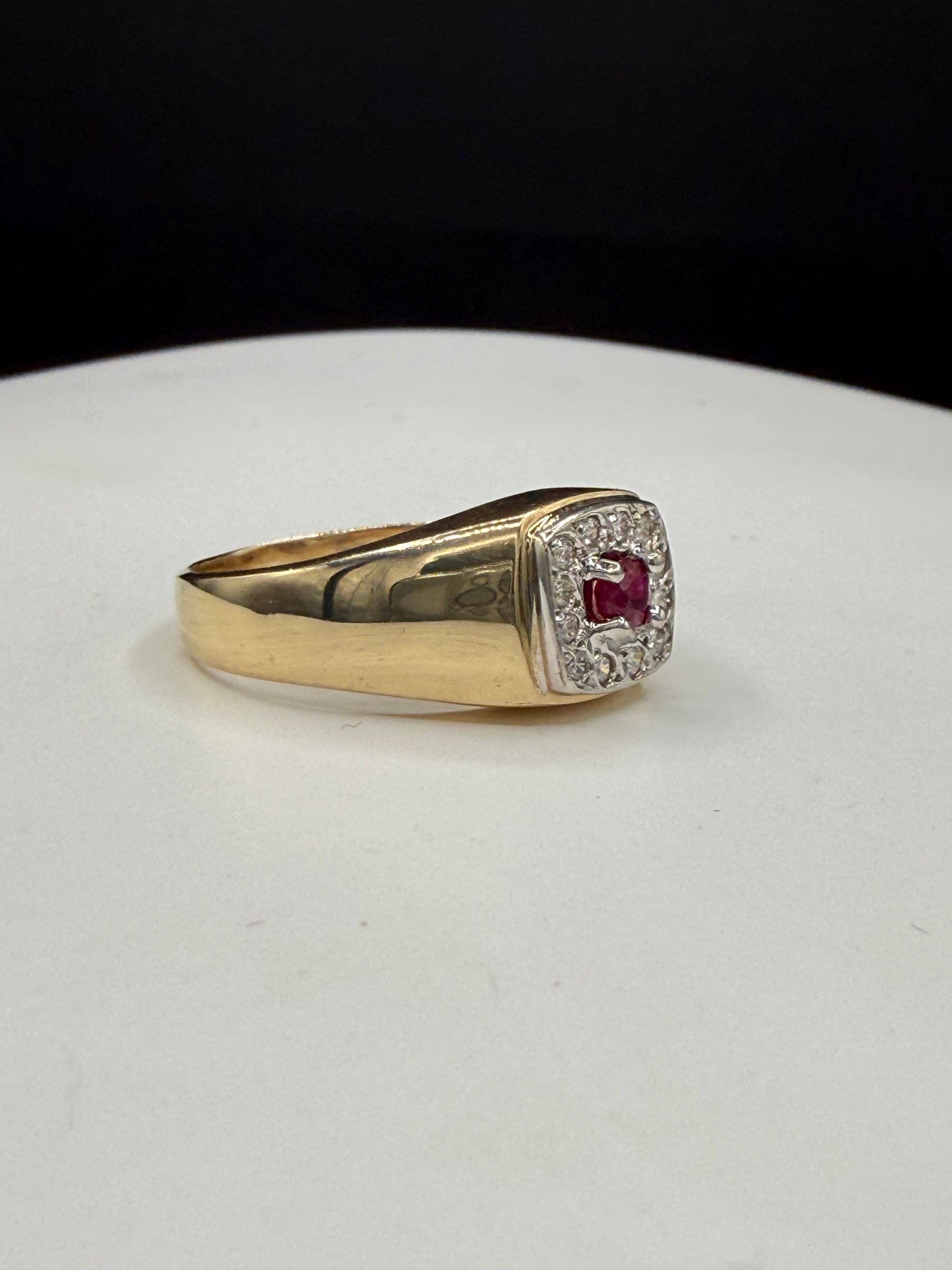 Vintage Men’s Natural Ruby & Diamond 14k Yellow Gold Ring (Size 9.5)